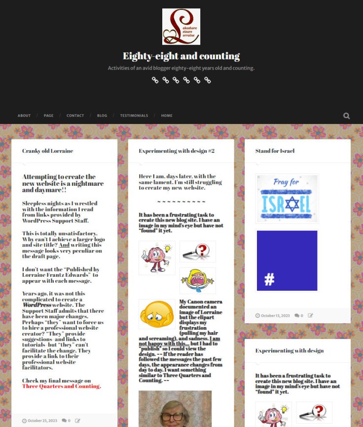 I ascribe to the “KISS” principle: Keep it Simple stupid/Senior. At eightyeight, I want to coast along with things that are familiar. Yesterday, the format looked like the image (below). Overnight, WordPress Support responded to another email from me and sent new instructions. Now I’m getting closer to the heading appearance that I’ve visualized (above).