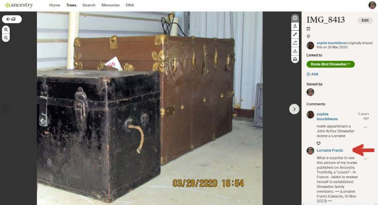Researching my family—and helping individuals who contact me for assistance—is rewarding. Today, it was a shock to see this picture of my old trunks on display in Ancestry. I’m delighted when I find illusive information and/or pictures of extended family members. Several hours, today, researching and documenting individuals for a woman who sent a request yesterday.~~ A link back to the time when the picture was taken.