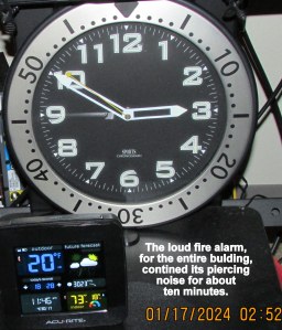 The extremely loud fire alarm, for the entire building, continued its piercing noise for about ten minutes. Gratefully, we were not instructed to leave the building. What a “nightmare” for residents in wheelchairs and using walkers. Imagine going out into the freezing temperature. ~~~ I was already wide awake, at the computer creating charts to illustrate family relationships. I could not get everyone on one chart. (Artist in residence.) The mother died and three children were in the homes of extended family members. My brain wouldn’t let me sleep because “inquiring minds want to know”…
