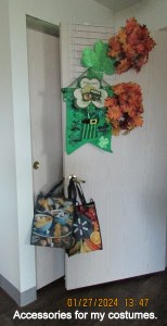 …you never know what you’re going to get.” (You, the reader.) After lunch, I acquired numerous items to use as accessories for my costumes—outfits that I wear to the dining room on selective occasions. (I should “downsize” rather than “acquire.”)
