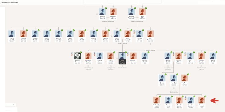 There she is: Gaynelle Graybill in the lower right corner of the ancestry chart image. Previously, she was not in my database. It took several hours—and all my detective skills—but I found “Mrs. Roy Crowder.” Why was I searching? Yesterday, I was researching GRAYBILL and I found an interesting page of Graybill information. Reference was made to Mrs. Roy Crowder being a descendant of King George III, of England. Tantalizing information for someone addicted to genealogy. I found her, I found her!! However, several Google searches for details about King George III failed to establish one of his daughters departing the British Isles.