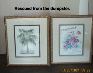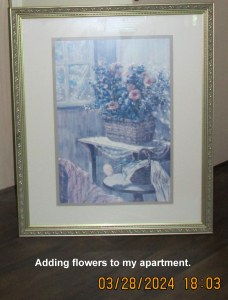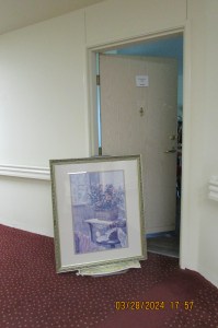 Seriously, I have been emotionally distraught!! This retirement facility is going through a major remodeling. Upper management, owners out-of-state dictated that the pictures were to go into the dumpster!! Many of “us” residents begged the resident manager for the pictures to go to an antiques and collectibles store, or Goodwill, or Salvation Army. “NO” the pictures had to go into the dumpster!! Many of us “old folks” loved the beautiful images in beautiful frames. We may be forced to look at “modern art”? Quietly, recklessly, some of us “saved” a few pictures from the ground floor. The third floor is experiencing the first makeover (my floor) and we didn’t have time to rescue pictures. Likewise, the pictures have been removed from the second floor. Today, all the pictures on the ground floor are destined for the dumpster. ~~ Changing the subject: Recently the residents were asked to complete a survey regarding all aspects of Lakeshore Estates. I rated everything “excellent.” If I were to complete the survey today, I would be far less complimentary!! ~~ Couldn’t sleep, depressed… so I prepared this blog message. Approximately 5:15 AM as I publish this message.
