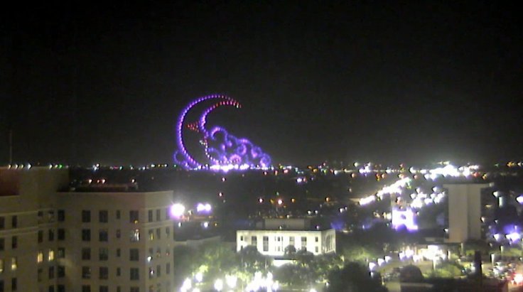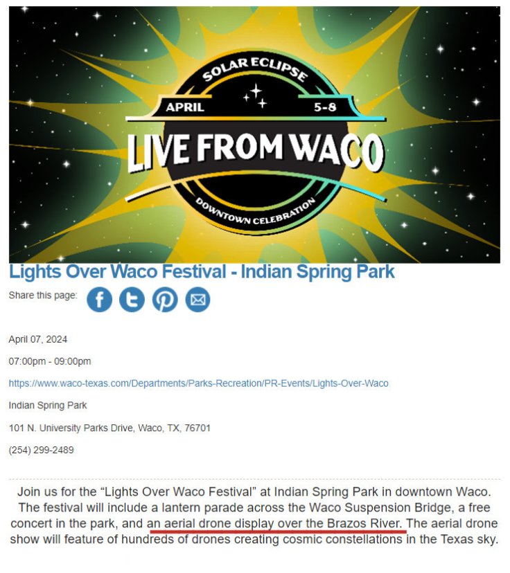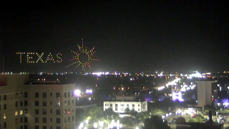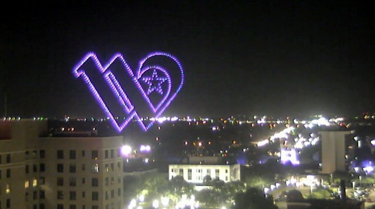 This old lady does not drive at night. Specifically, I would not want to be surrounded by terrible Waco traffic ramped up with the multitudes of visitors for the solar eclipse. I would have enjoyed the drone lights display, in person. I experienced a “once in a lifetime” search of the Internet to see if the display would be streaming live. Our local Waco CBS TV station had a camera focused overlooking the city. I recognized it was a “live” image because traffic lights were noted, and vehicle traffic. I patiently waited… and was rewarded with the awesome drone art. I have never taken a computer “screen print” of a “live” event. I clicked on many images and some were available later. A very different Sunday evening for Lorraine.