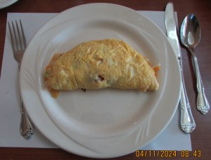Sunshine and “sensation” !! Thankful for Thursday, after two days of “doom and gloom.” Grateful for an omelet prepared by our sensational chef—with the ingredients of our choice!! Share this: Click to share on X (Opens in new window) X Click to share on Facebook (Opens in new window) Facebook Like Loading... Related Leave a comment Cancel reply Δ