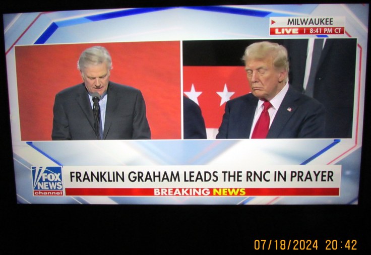 …the last night of the Republican National Convention reminded me of a spiritual event Christian Revival Meeting. The RNC was a “political” rally but many of the speakers expressed their faith in God. And we heard a prayer, by evangelist Franklin Graham, for our Country, Donald Trump, and JD Vance.