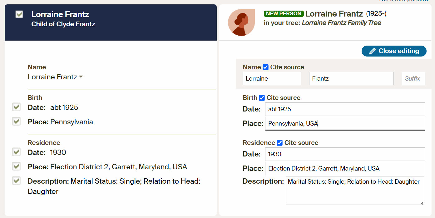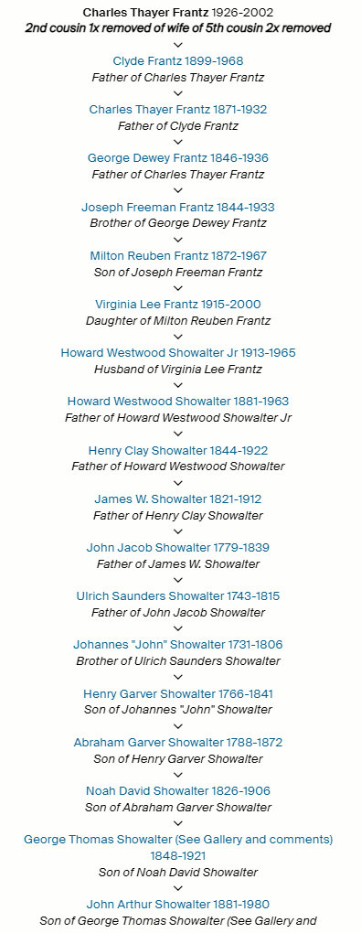 Interesting events on this Labor Day holiday weekend. Another opportunity to wear a “costume” to the dining room and put a smile on the faces of the residents. Another day spent on the computer doing Ancestry. I went past 113,000 individuals in my database. I found another connection between maternal lineage, Showalter, and paternal lineage, Frantz. There was another woman named “Lorraine Frantz” and that is worthy of documentation. Furthermore, I love to create images illustrating cousin marriages. My “forest” of families lived in the same communities, worshipped in the same church, and intermarried. “The family that prays together, stays together.”
