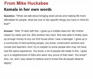 Sean Hannity: “Kamala in her own words” Kamala In Her Own Words. ~ ~ ~ ~ ~ ~ ~ ~ ~ ~ ~ ~ ~ ~ ~ ~ ~ ~ ~ ~ ~ ~ ~ ~ ~ ~ ~ ~ Mike Huckabee had this to say, and the image (below) is from one of his recent email messages. Click on each image to enlarge it for easier viewing. Share this: Click to share on X (Opens in new window) X Click to share on Facebook (Opens in new window) Facebook Like Loading... Related Leave a comment Cancel reply Δ