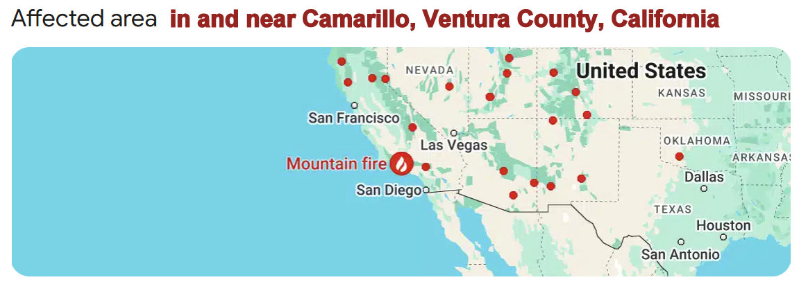 The TV news showed pictures of the wild fire in Camarillo, Ventura County, California. A son and grandchildren live there. Please join me in prayer for the families, schools, churches, industry, and business’ in that area. I almost made my “forever home” in the foothills near Camarillo.