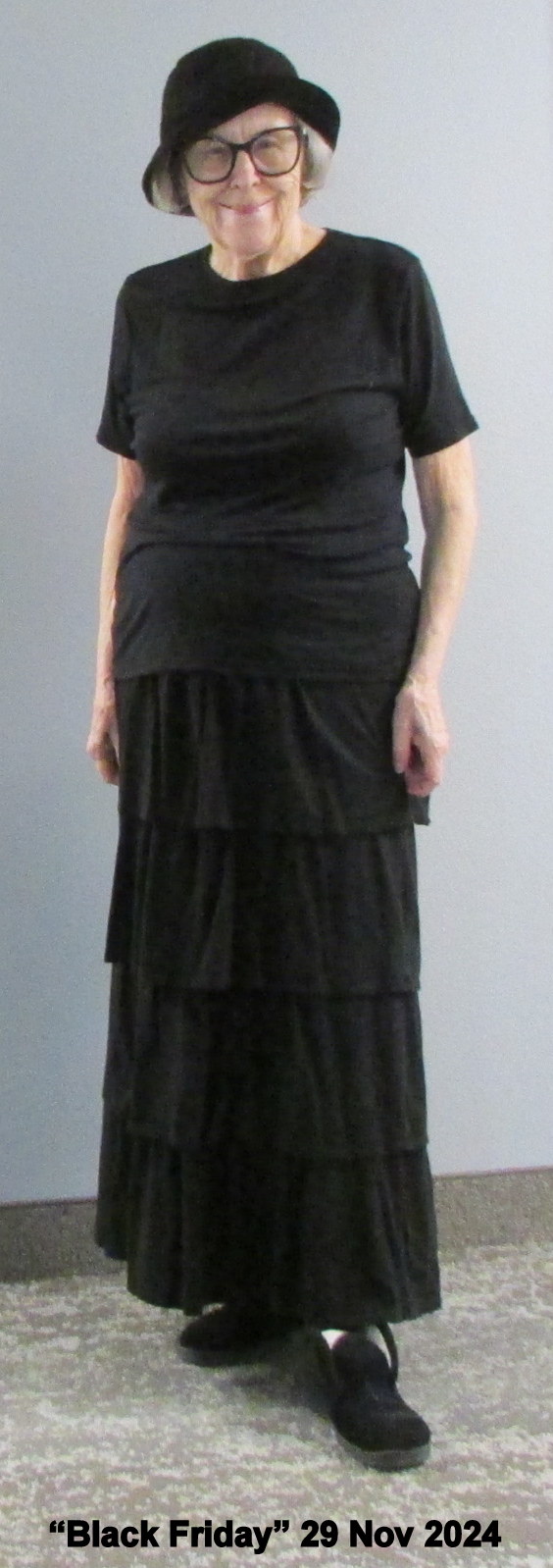 The opportunity to display another “outfit” but absolutely no shopping spree. It is a fact that I have everything I need. In fact, a lot more things than I need. Today, I’ll mingle with the residents with two greeting cards, requesting signatures. “Thanks” for our excellent, wonderful chef, and “Miss you” for our superb, wonderful Activity Director, recovering from surgery.