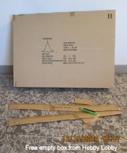 Something to crow about #2 Another trip to Hobby Lobby for another container of glue. Also departed with a large empty cardboard box because something valuable for my project. Share this: Click to share on X (Opens in new window) X Click to share on Facebook (Opens in new window) Facebook Like Loading... Related Leave a comment Cancel reply Δ