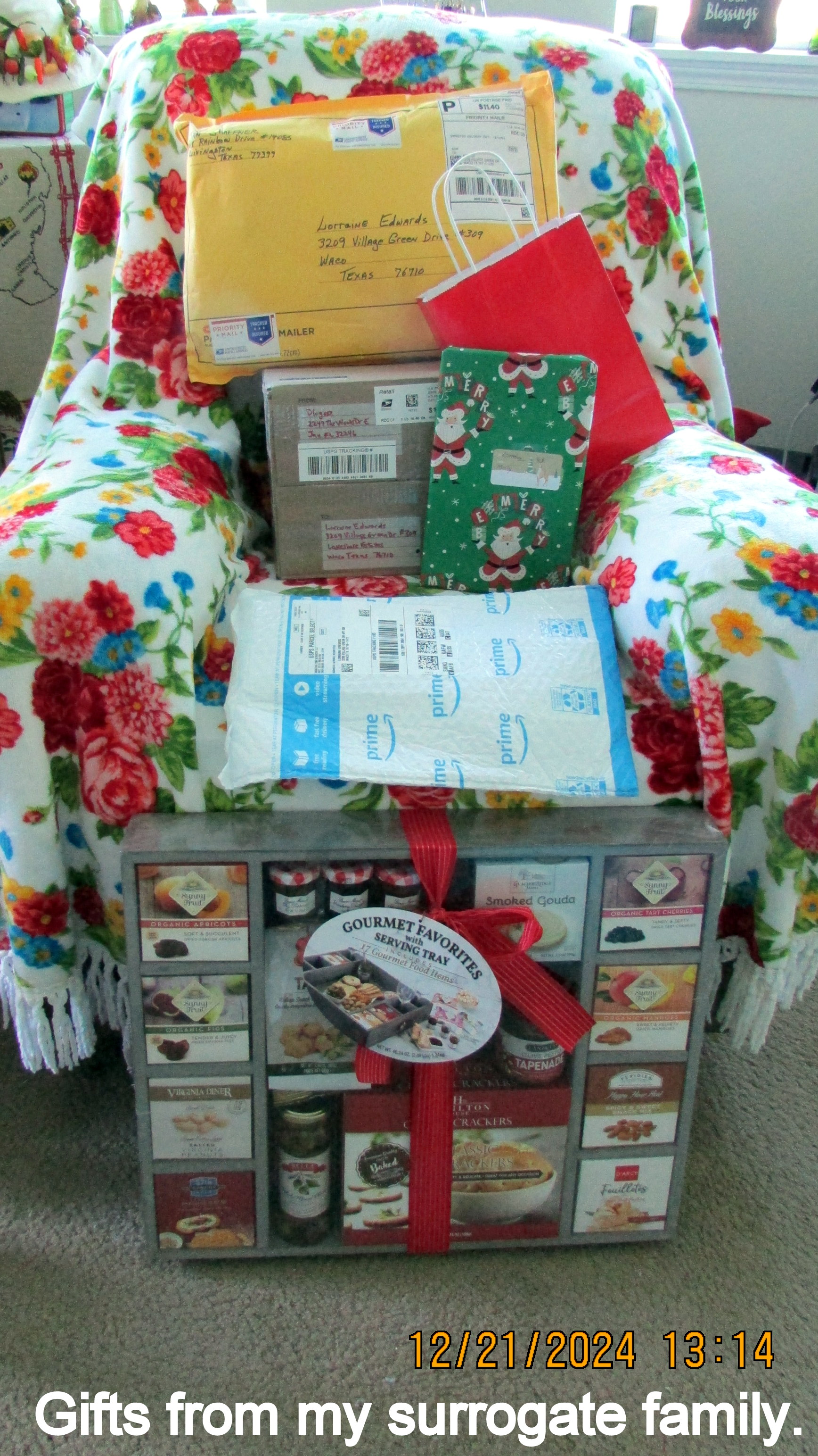 Many years ago, my biological family rejected me. Gratefully, PRAISE THE LORD, I have friends who are my “surrogate family.” Several years ago, the beautiful, warm “throw” was a Christmas gift from my brief acquaintance with the Spectrum television provider technician.