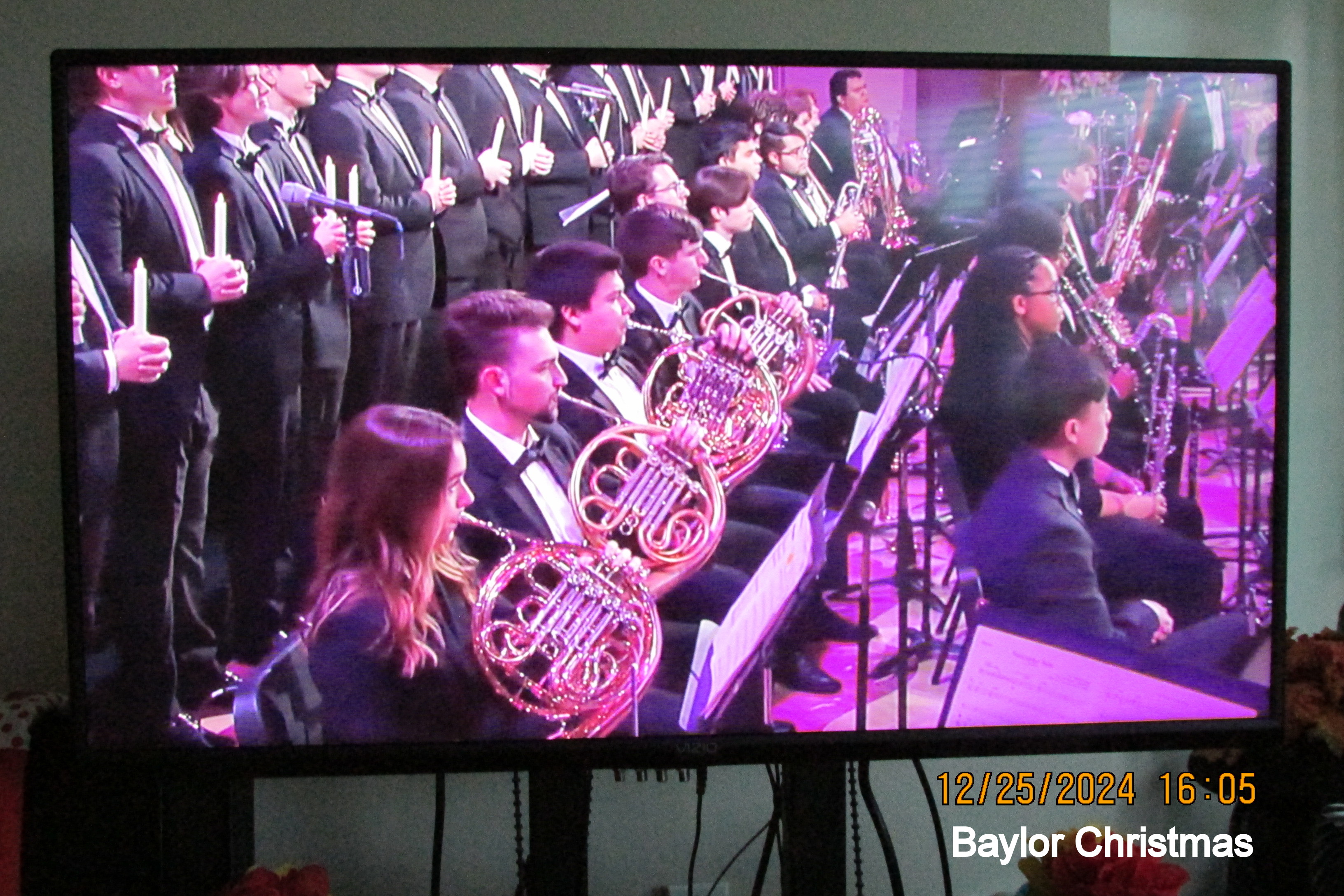 Late afternoon: Beautiful Christmas music sung and played by wholesome appearing young women and young men at Baylor University, in Waco, Texas (my transplanted hometown).