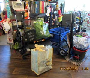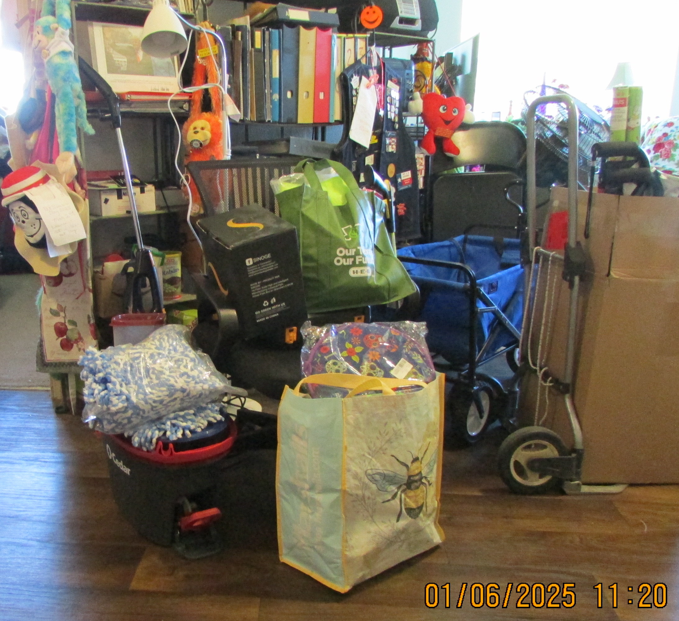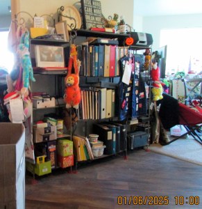 My planned “New Year’s Resolution” was “get my affairs in order; no more procrastination.” One of my resident neighbors has moved to a convalescent home. He is restricted from taking his personal items. (IMHO, that is a crime!) He has no family so a couple of me (ha) stepped up to “save” items for a donation to Salvation Army. If management clears the apartment, things go into the dumpster. 😦 Obviously “no climbing trees” today and nothing was accomplished regarding my original plans for the day. Click each picture—for better viewing—and see the “timestamp” with the progression of the task. True story: My heart sings when I can help a neighbor.