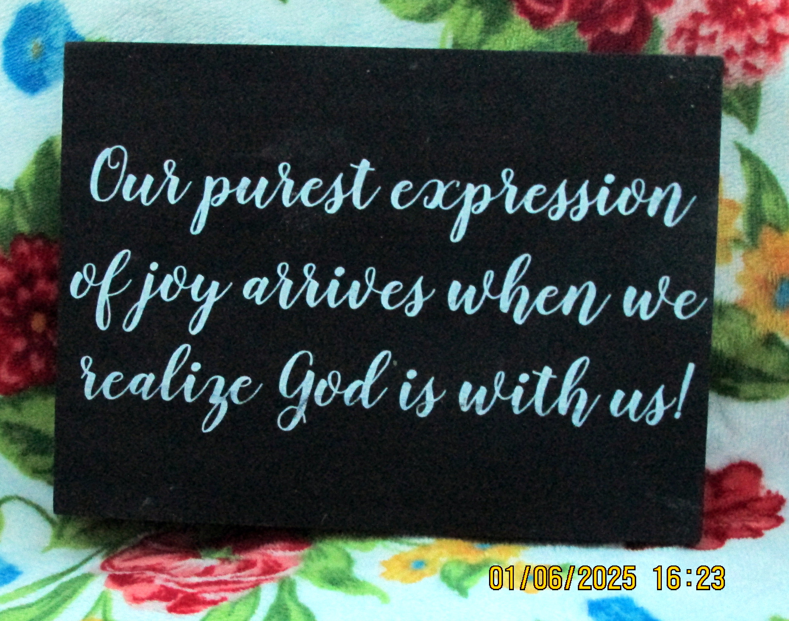 The chair—and the lamp—and later, my air-matress bed will be donated. I’m paying for the “swapped” chair, lamp, and twin bed. (Perhaps I’ll get a better night’s sleep?) The “purest expression” plaque is from the resident’s room and joins my “risk more” plaque from an earlier Thrift Store purchase.