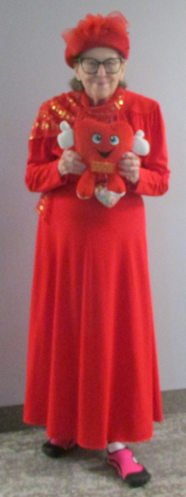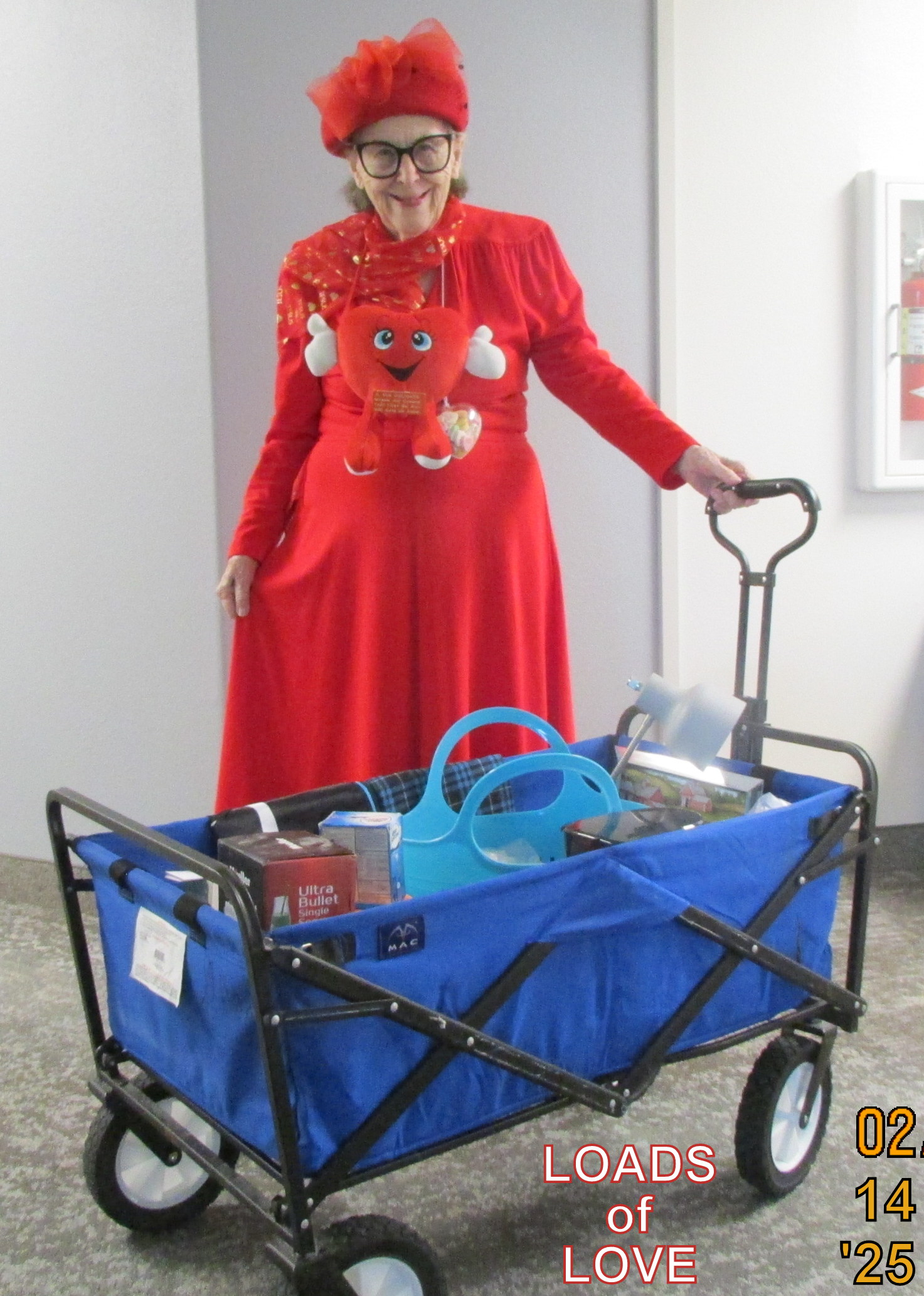 The “gift giving” was an enormous success. The wagon was almost empty when we returned to our apartment, after lunch. I’ve been collecting items that residents can’t take to smaller quarters or a convalescent home. I take things to Salvation Army. I had the inspirational thought that “charity begins at home” and Valentine’s Day was the perfect opportunity.