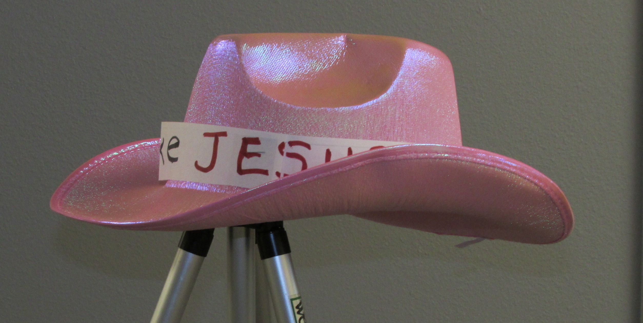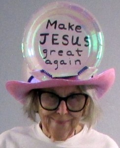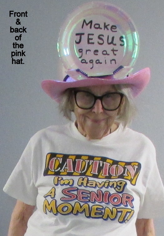 The second “project” started as a middle-of-the-night inspiration. I’m a believer that we need to “Make America Great Again.” Honesty, I believe we need to “Make Jesus Great Again.” I recently saw the pink cowboy hats at Dollar General but (at that time) told myself (with twenty–seven hats) that I didn’t need another one. But my “inspiration” said the pink cowboy hat would attract attention. My original plan: The words on a band around the hat’s crown. I experimented… with a “draft’ paper band and saw that the message was hidden by the curved brim of the hat. Going in another direction was very challenging! How would I attach the attractive “pink party paper plate” to the plastic hat? One by one, I gathered “possibilities” and eventually arrived at the finished product that I believe will remain secure. ~~ Help me start a movement with believers wearing hats that say “Make Jesus Great Again.”