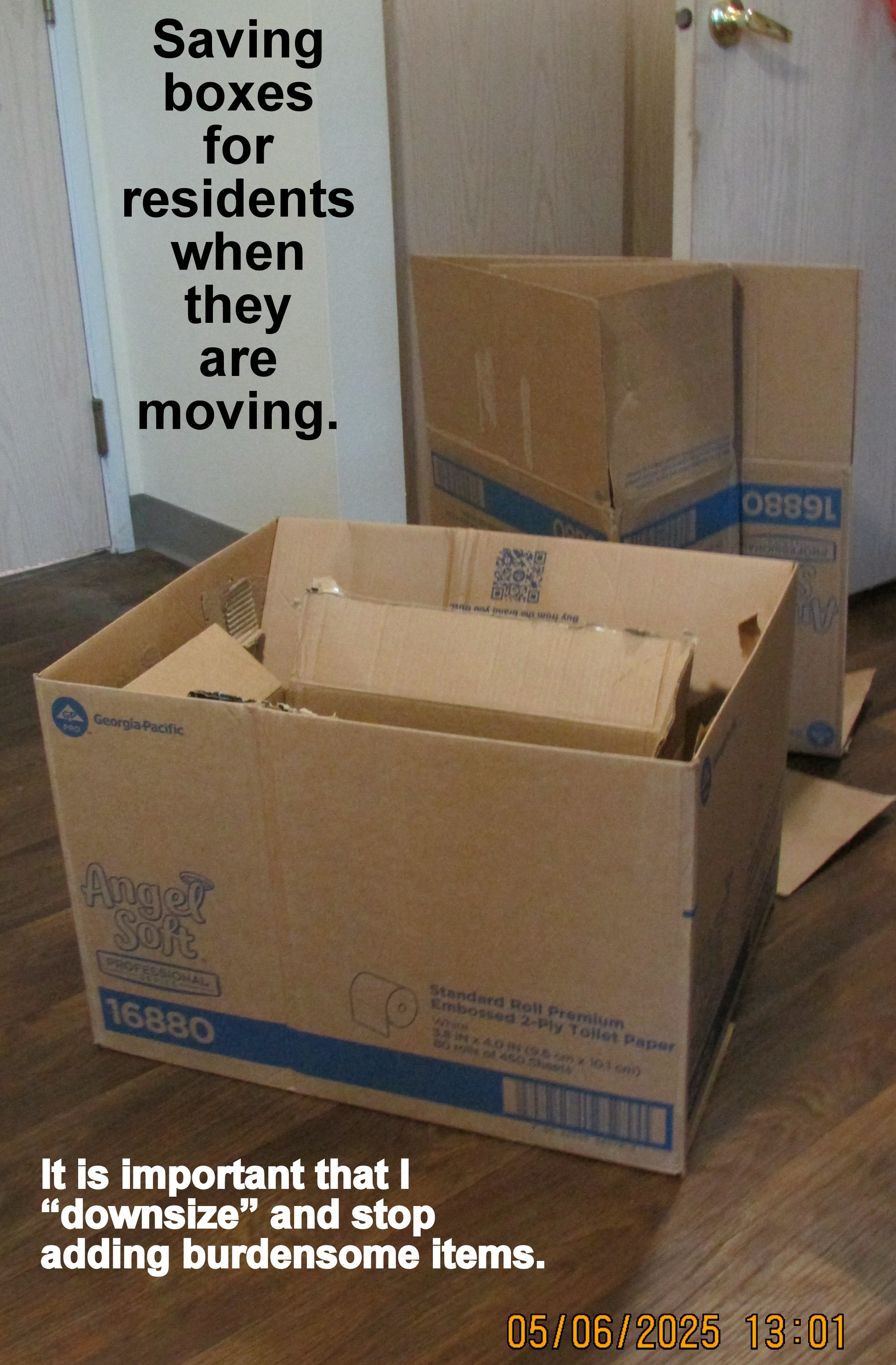 Ought to have my head examined?! I hate to see “good things” going into the dumpster. “Someone can use that” is a thought uppermost in my brain. Recently, I shared boxes with a family member moving things from the apartment of her mother—because “mother” is now in a convalescent home. Daughter profusely thanked me and said I “saved her life.” It gives me great joy to help others.