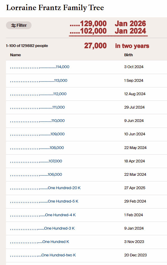 A “Monday surprise” because I rarely see those “numbers” in my family tree. Ancestry constantly makes changes… and my earlier documentation could not be located. This mysteriously appeared and I quickly created the printscreen image. I’ve climbed a lot of trees! This is an addiction; I confess. I pray that my devotion to the extended family is rewarding for the researchers who visit the Lorraine Frantz Family Tree. Rejected by my immediate family… Ancestry is my medicine, and my joy. I have been blessed with a forest of Christ-centered, Bible-believing ancestors. I consider it a God-given privilege to document my Old German Baptist Brethren, Church of the Brethren, Mennonite, and Quaker families.
