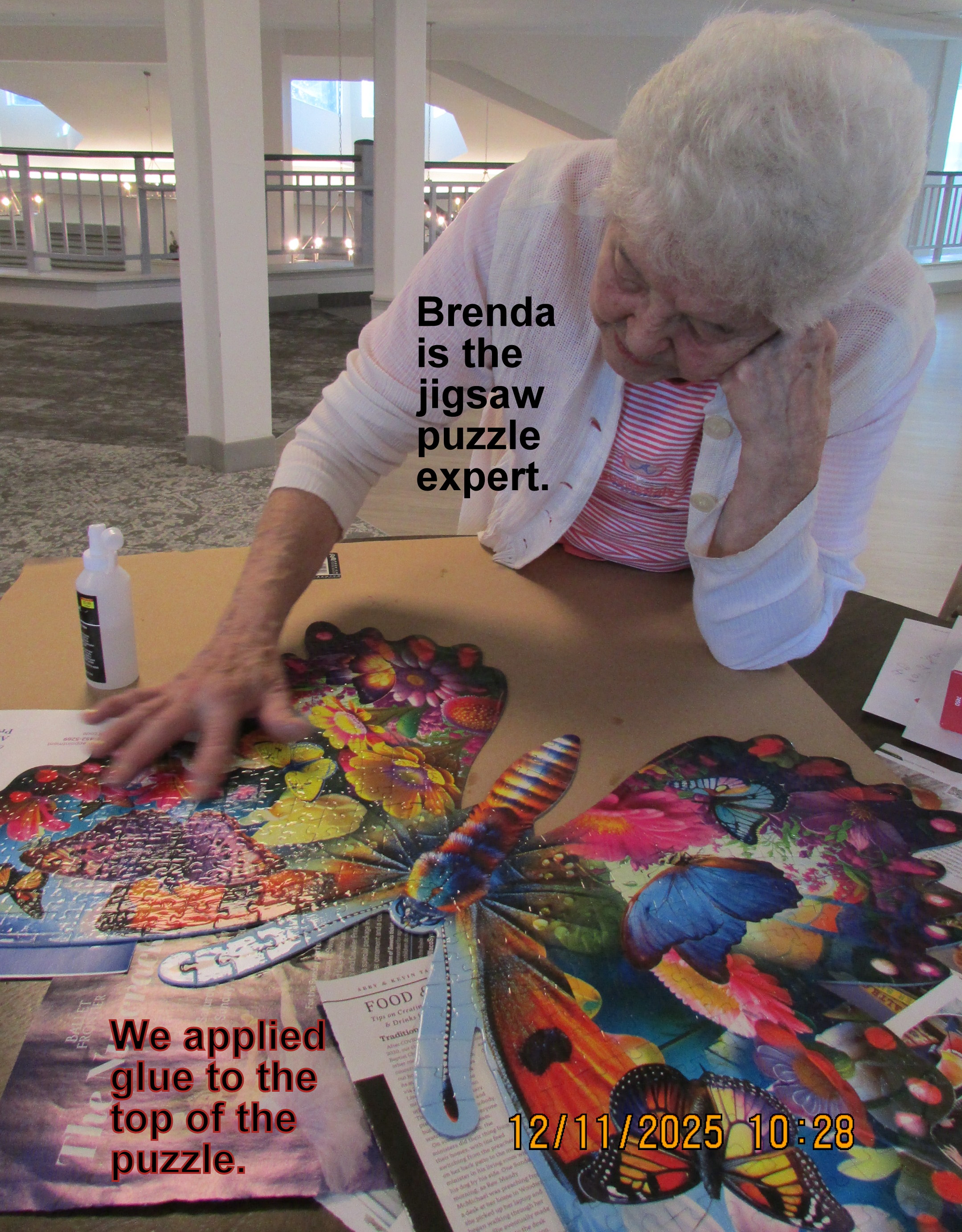 Considering the decorations on some of the residents’ doors, quite possibly the sentiment may be “the Grinch stole Christmas.” My sentiment gravitates toward the beautiful wreath with the sentiment “Jesus is the reason for the season.” A lady-friend resident is putting the puzzle pieces together—for me—and I will glue it to a backing and have the picture in my room. Repeat: “Jesus is the reason for the season.”
